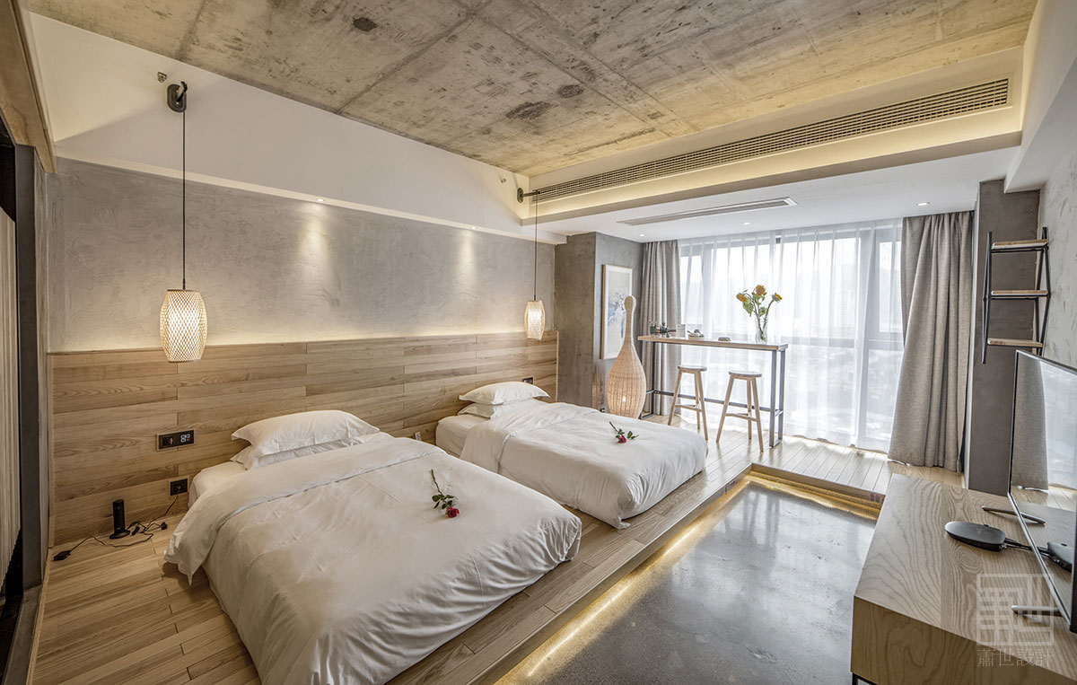 本套客棧設計大面積使用了樸質的原木、麻石、清水地面以及天然文化石,來烘托出張家界的地理環(huán)境及大自然原汁原味自然格調,在空間各裝飾面,設計師盡量以減法的方式處理,素色的水泥面,隨性白色肌理墻面,讓空間拋棄了繁雜的立面處理,以最簡潔的方式還原空間本質通過放松自然的原木家具及藝術品來點綴空間少即是多,讓人身處其中,遠離城市的喧囂與嘈雜回歸純凈,尋找真實的自我。在展示出客棧樸實素雅而具有韻味的同時,又融入了現代裝飾元素和現代審美藝術,既從根源上保持了客棧民族風貌,也增加了優(yōu)美的現代裝飾線條,讓客棧特色形神俱在,任誰入住客棧,都不會忘卻這悠然舒適的生活服務和民族特色文化的熏陶......